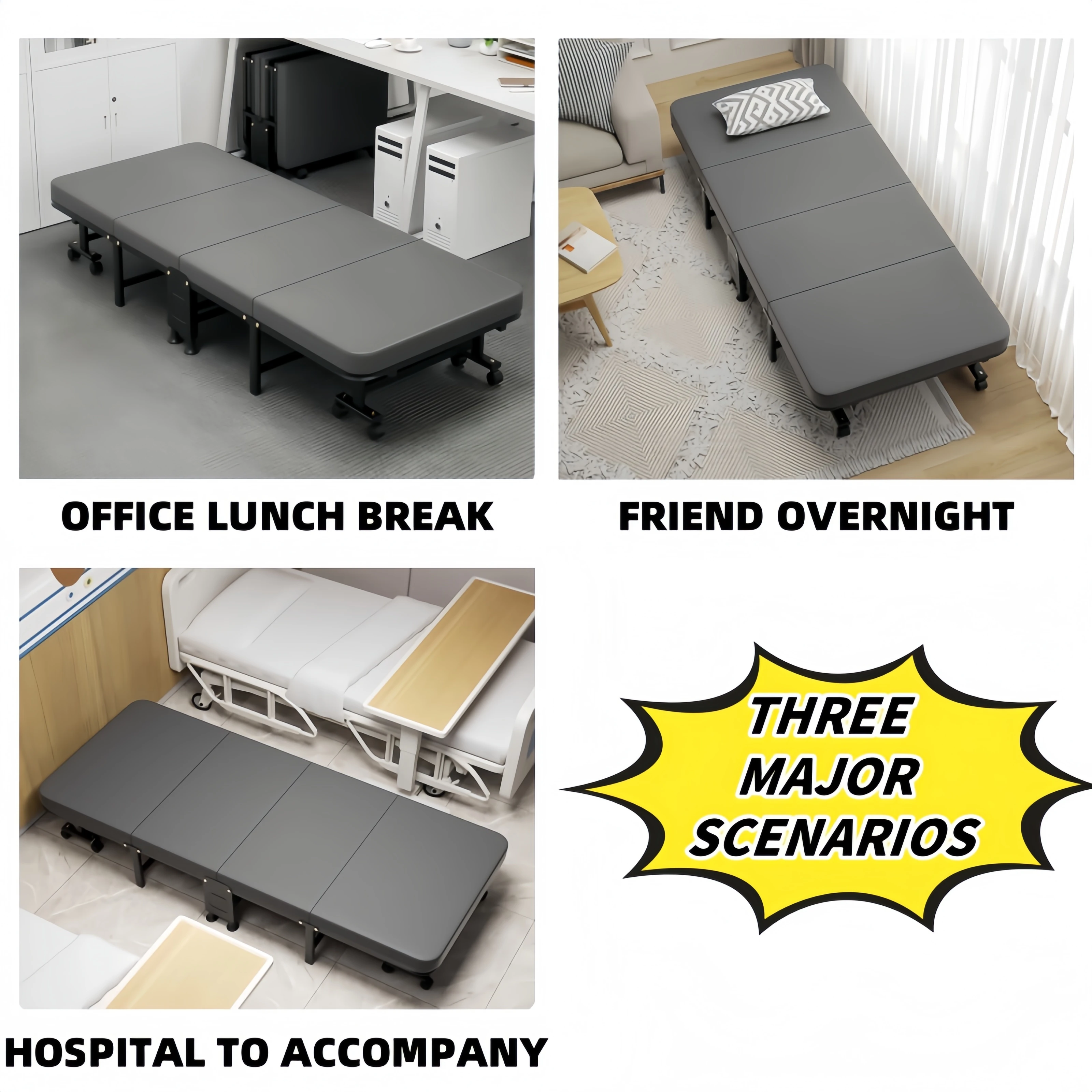1 Folding Bed Dust Bag or 1 Folding Bed with High Density Compact Storage with High Density Sponge Mattress, Single Bed, Easy to Assemble, Lightweight, Portable Iron Frame Design for Office, Outdoor or Home Use, Safety Design