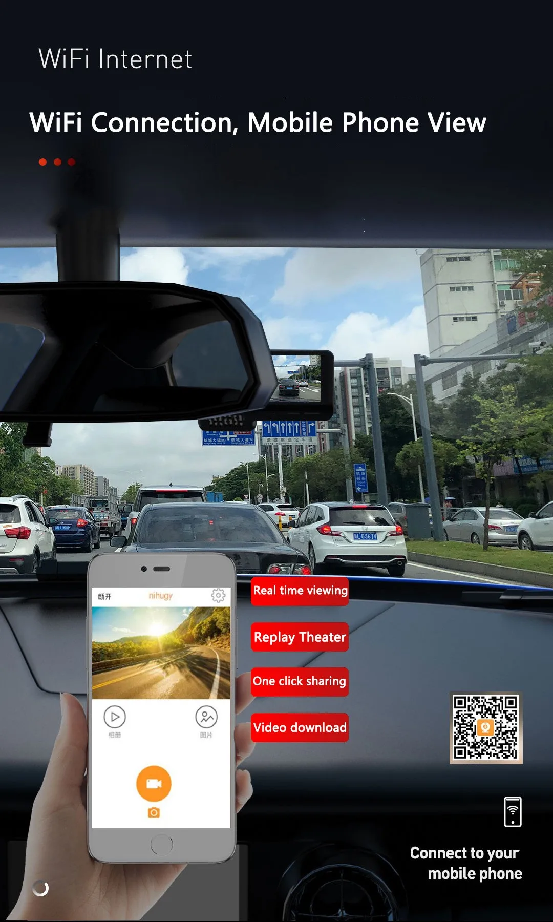 NIGHT VISION, G-Sensor, Build-in WiFi, Emergency Accident Lock, ADAS