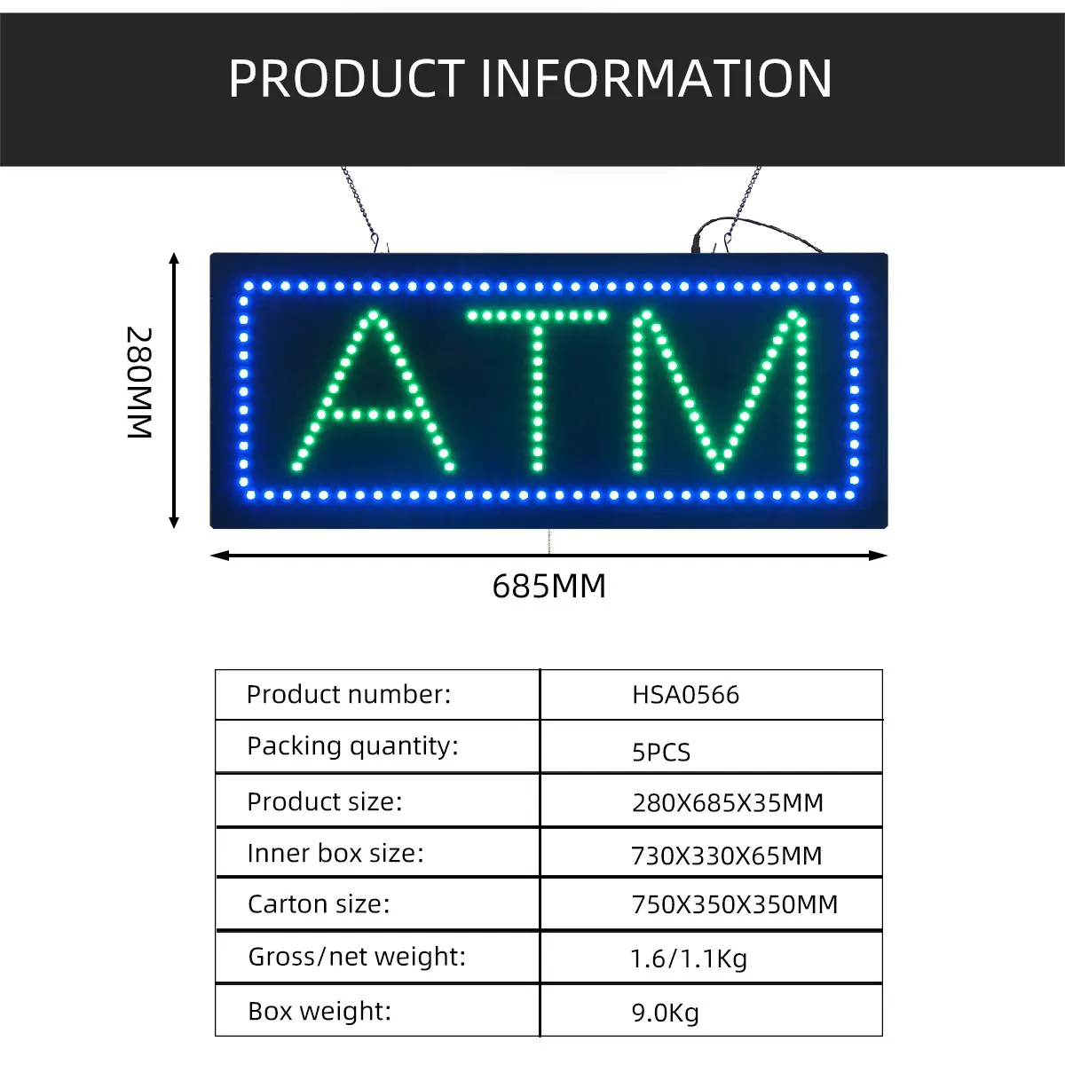 11*27 Inch High Bright ATM Bank Building Sign, Led Advertising Street Light Animated Signage
