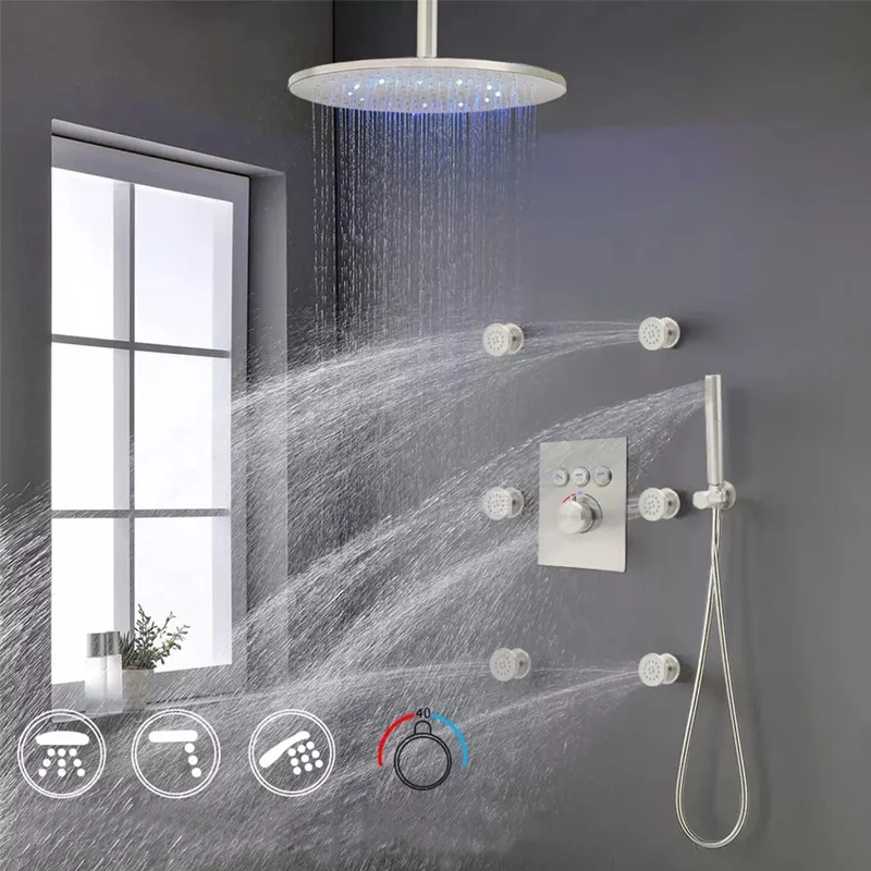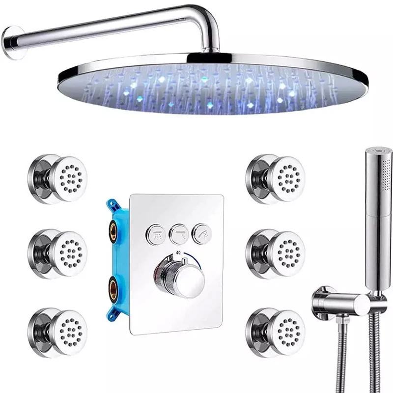 12 Inch Wall Mounted LED Rain Shower Head System with Thermostatic Mixer