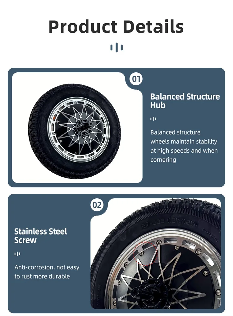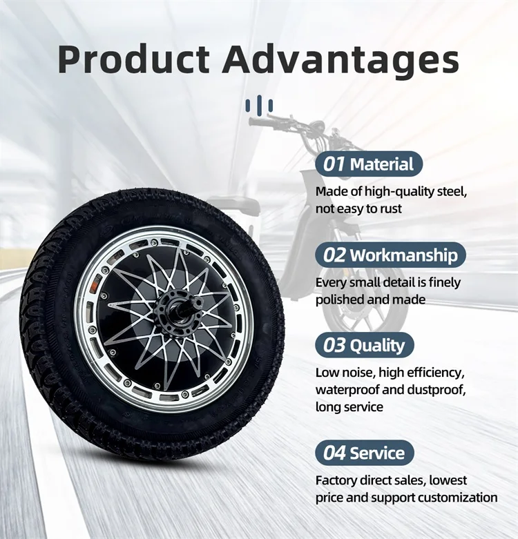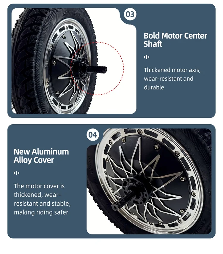 2.The hub motor sizes are various, such as 4",5",6", 8",9",10", 12",13", 14.5", 15" etc.