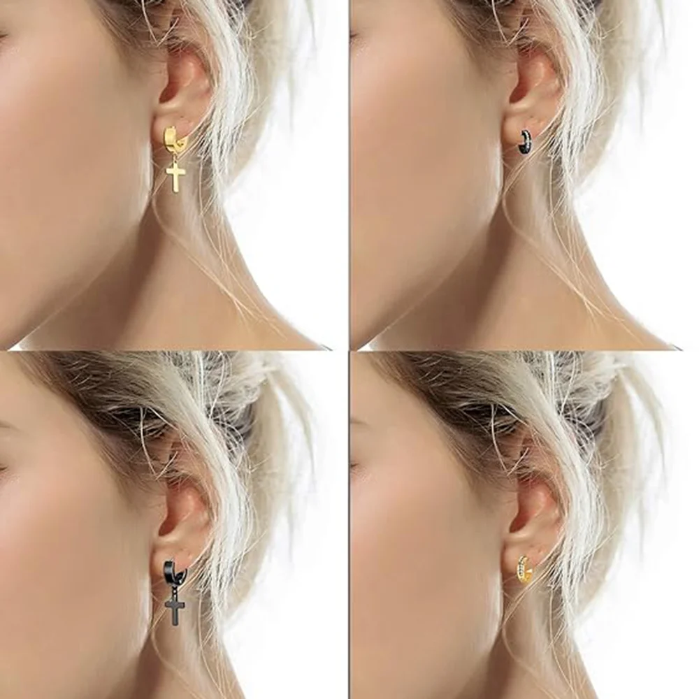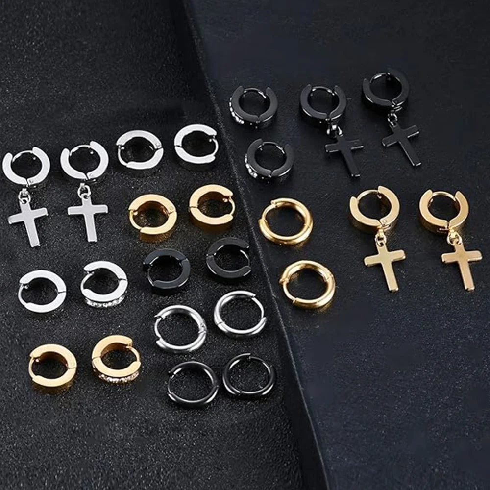 12 Pairs Stainless Steel Small Hoop Earrings Set Huggie Earrings CZ Inlaid Dangle Hinged Stud Earrings for Mens