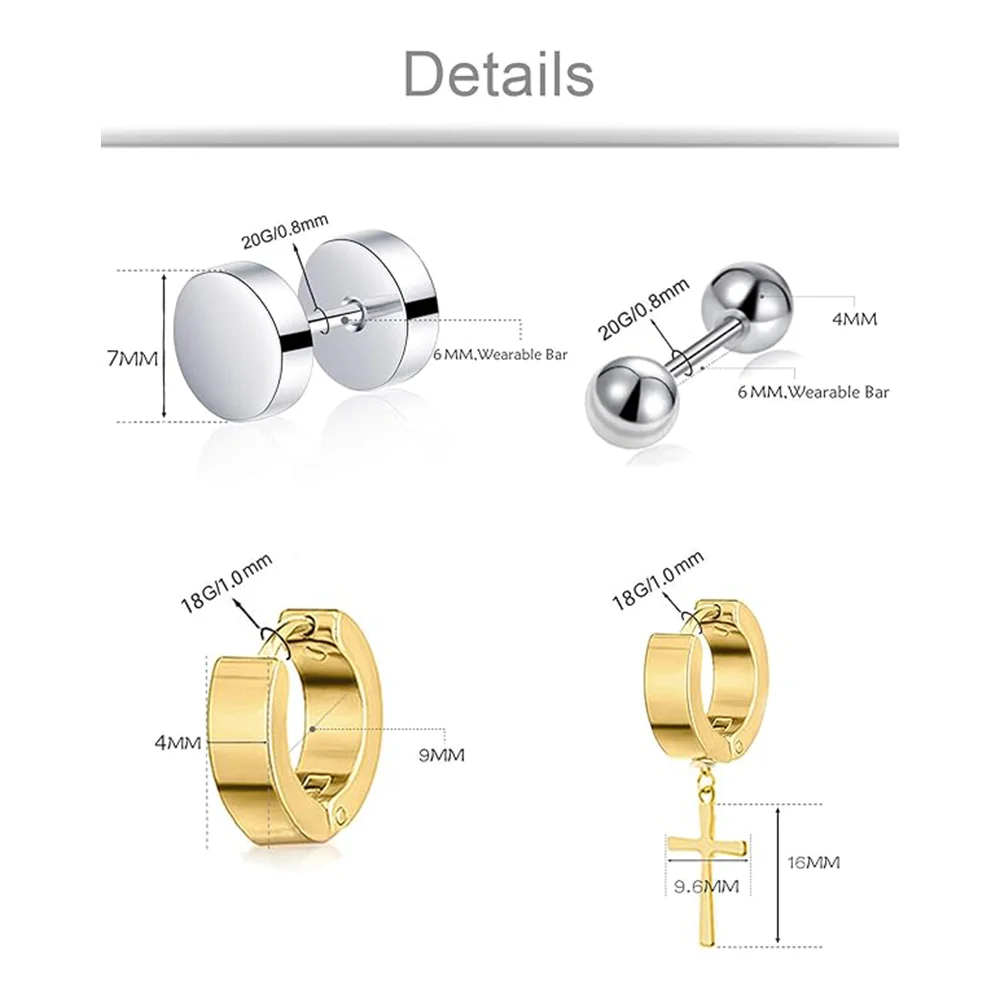 12 Pairs Stainless Steel Small Hoop Earrings Set Huggie Earrings CZ Inlaid Dangle Hinged  Stud Earrings for Mens