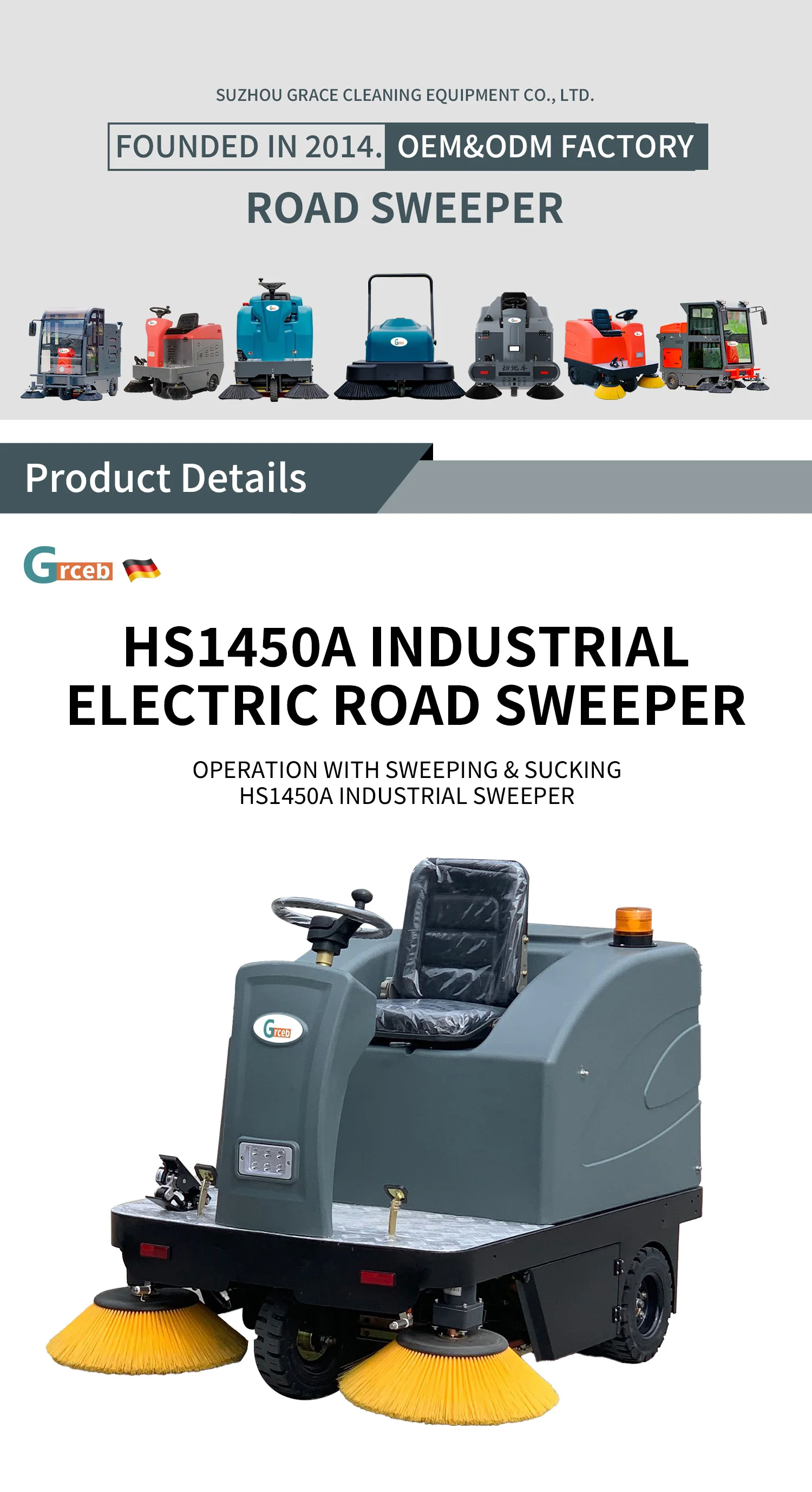 Product name: HS1450 Ride-on Road Sweeper