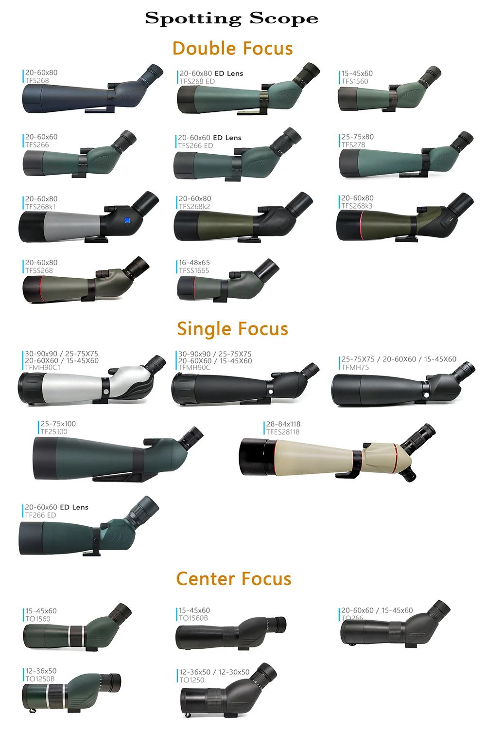 1.6pcs/carton, carton size:53x45x36cm, weight:14.5kg. 1 pc of spotting scope include soft bag, instruction paper, clean cloth, gift box/general color box, tripod (extra charge)