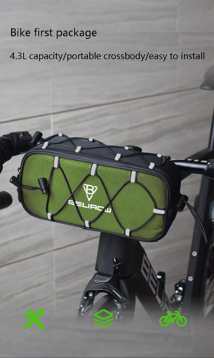 2.1/4.3L Bicycle Handlebar Bag Large Capacity Storage Front Tube Bag Basket Pack Cycling Accessories for MTB Foldable Bike