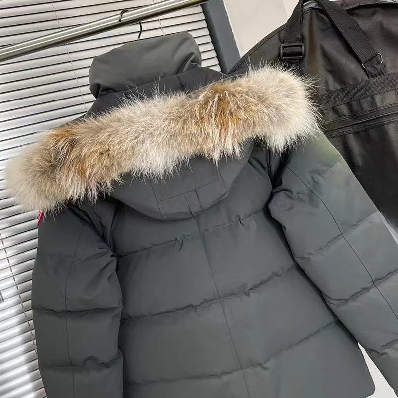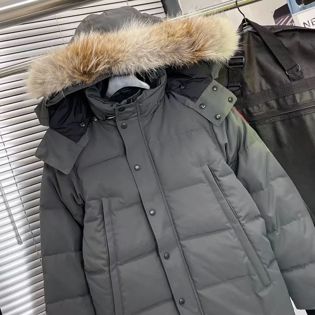 2.1Classic Style High Quality Warm Outwear Coat Windproof Hot Real Coyote Fur Winter Mens Canadian Wnd Parka Goose Down