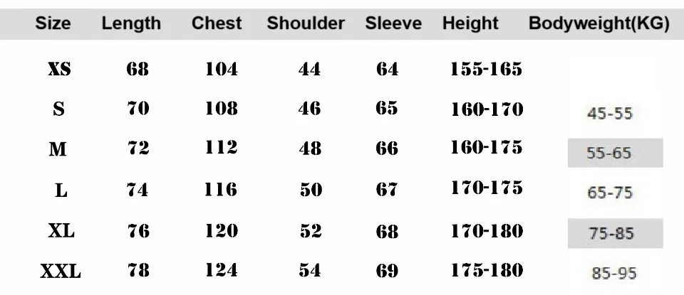Size Chart of This Design (CM)