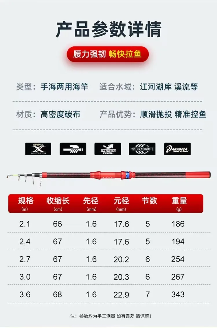 2.1m - 3.6m ultra Light ultra Hard 45-layer Fiberglass Telescopic Marine Saltwater Fishing Rod