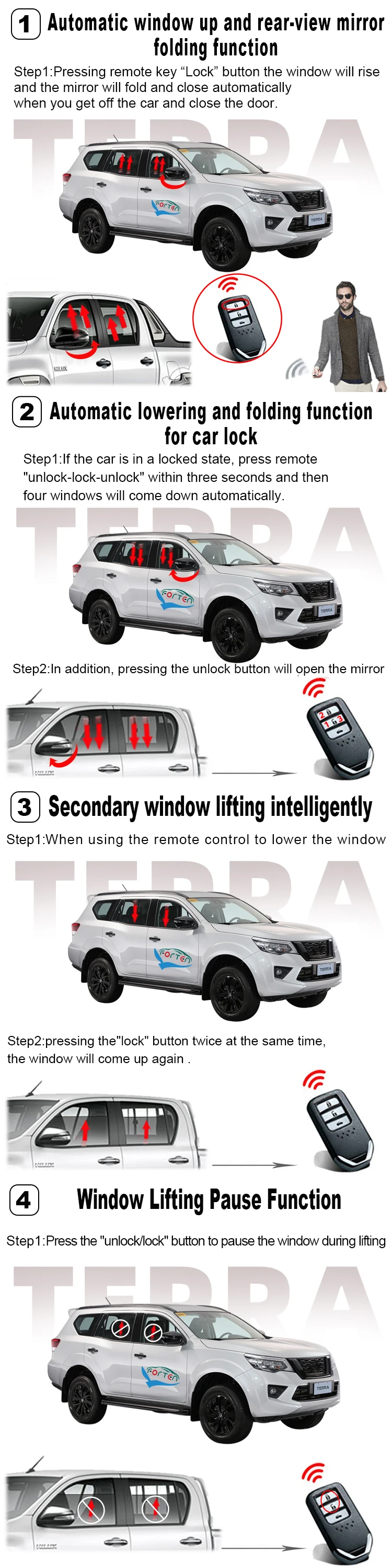 2016-2019 Terra Auto Electronics Car Automatic Window Close Kits Power Remote Key Start Electronic with Mirror Fold Module