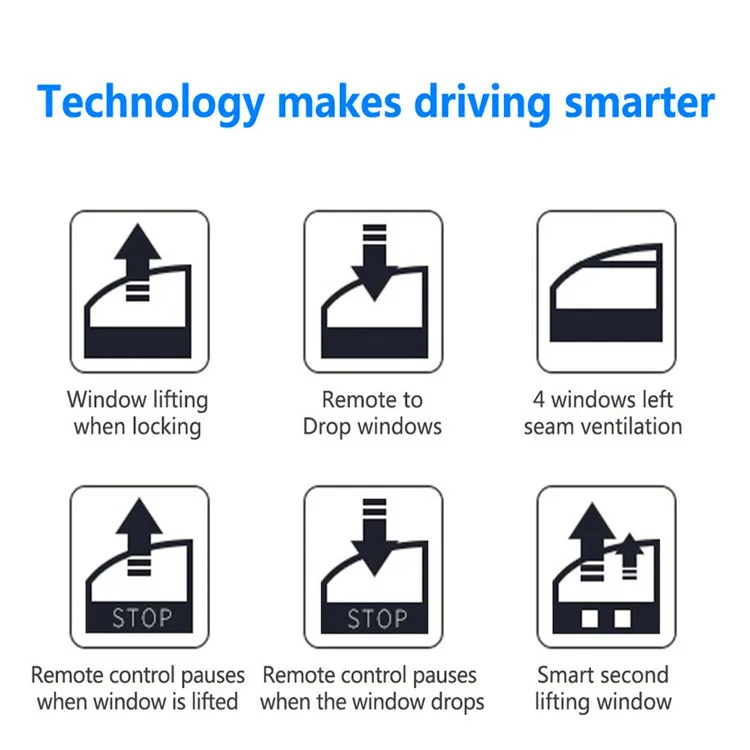 Smart Window Lifting. After use remote to open the windows , Press the"lock" button two times, window will close again.