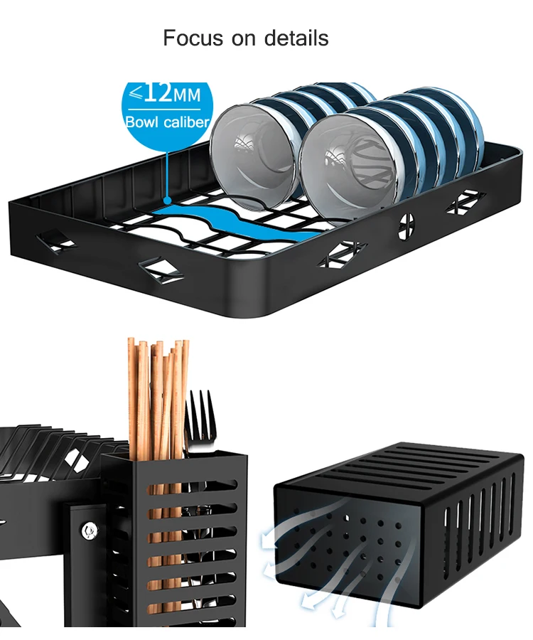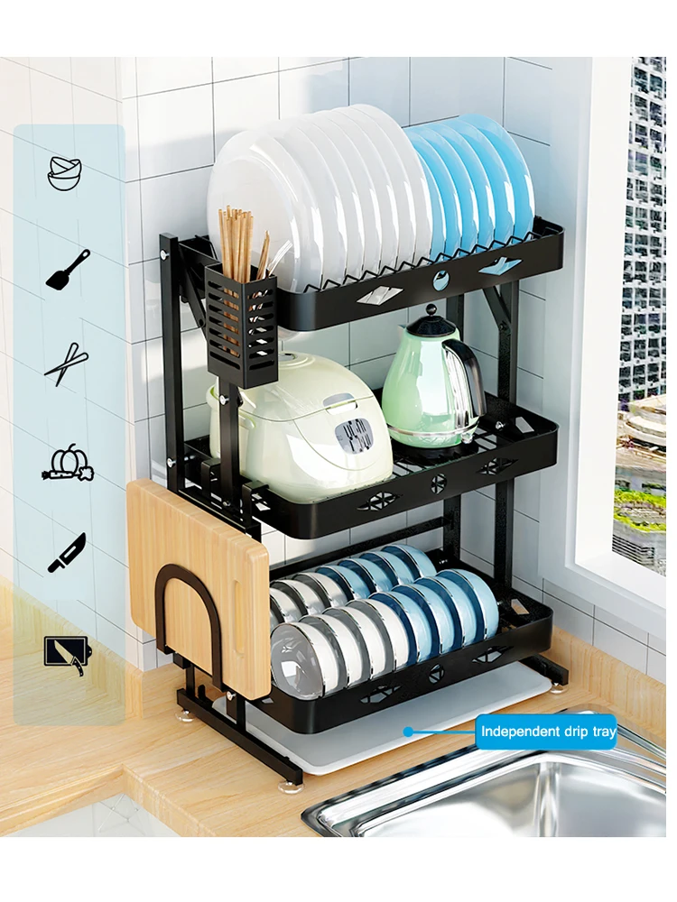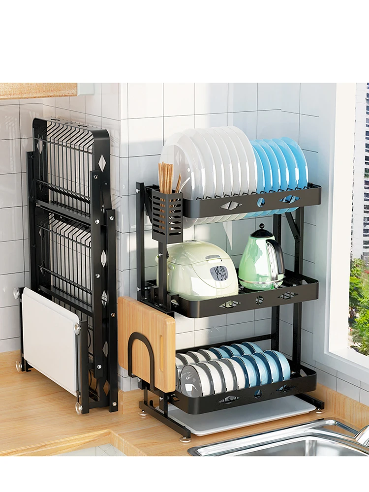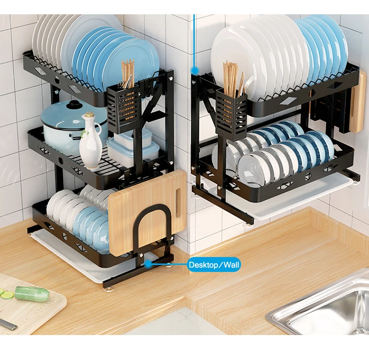 2021 New Wall-mounted/desktop Stainless Steel Foldable Dish Rack Dish Drainer Rack with Drip Tray Kitchen Accessories Organizer