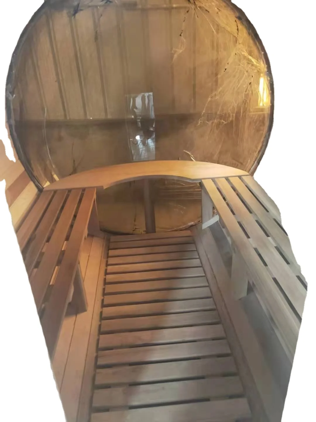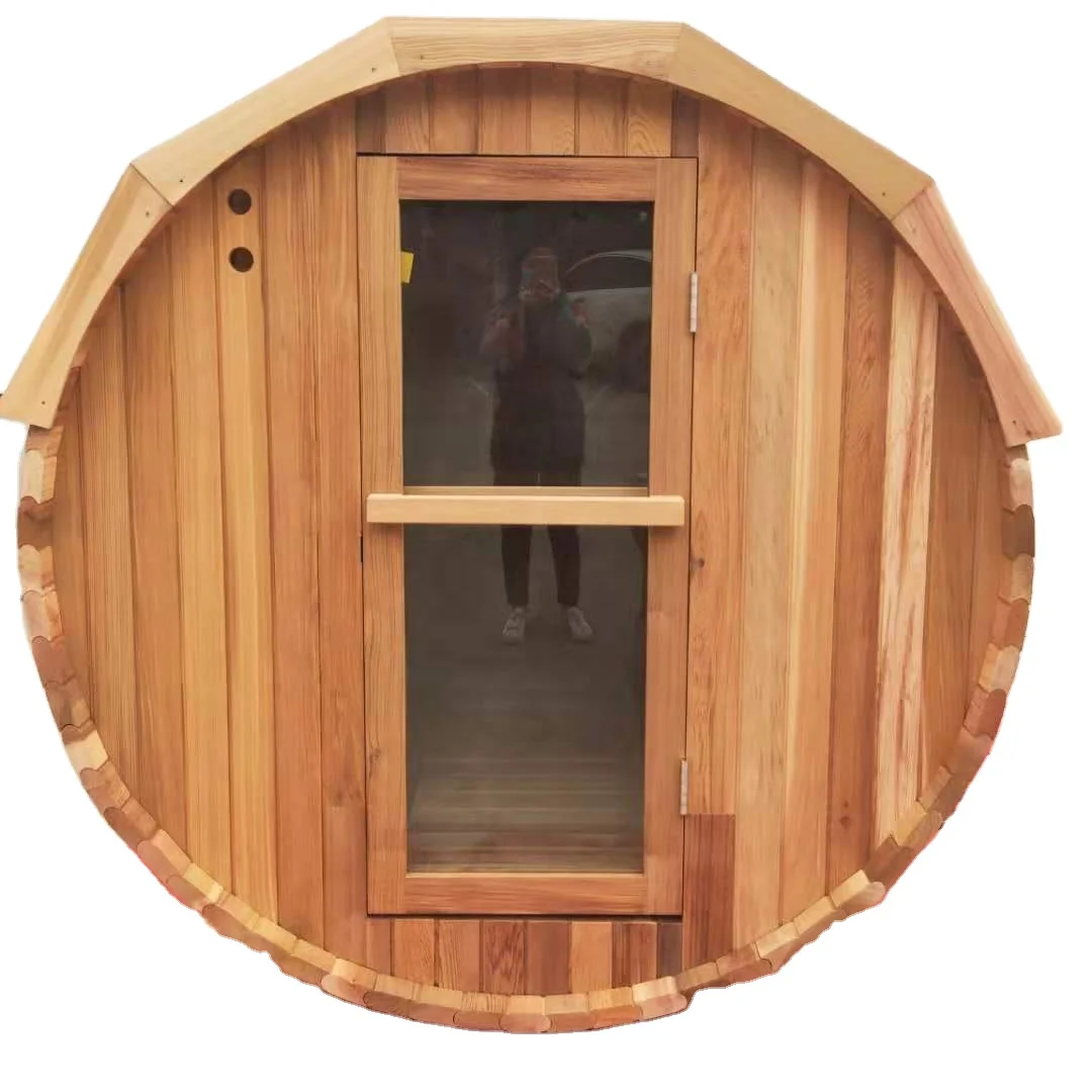 2021 Popular 4-6 Person 1800*2400 MM Outdoor Sauna Room With Porch Traditional Solid Wood Canadian Pine/Hemlock/Red Barrel
