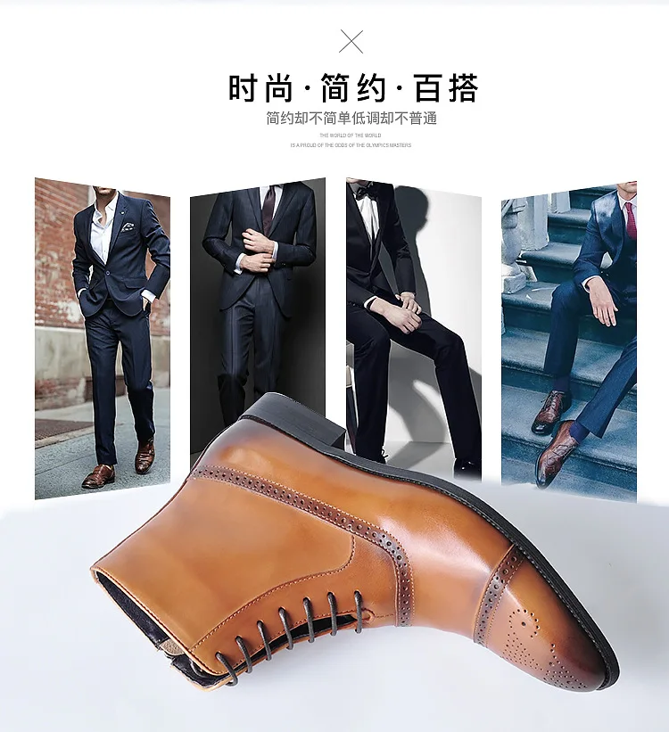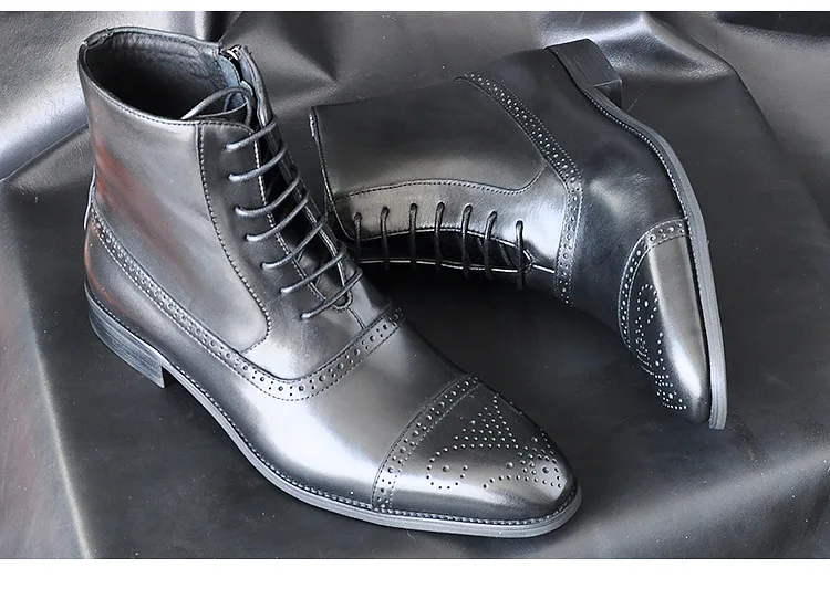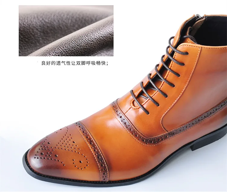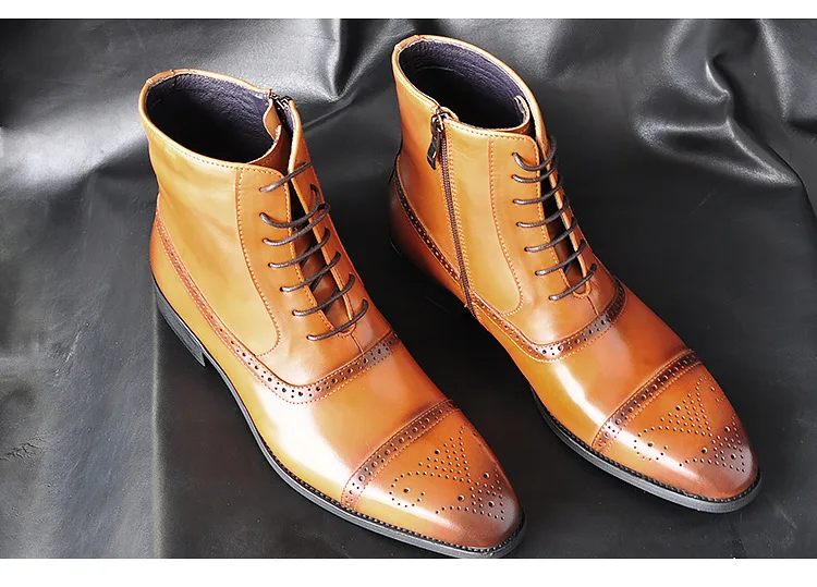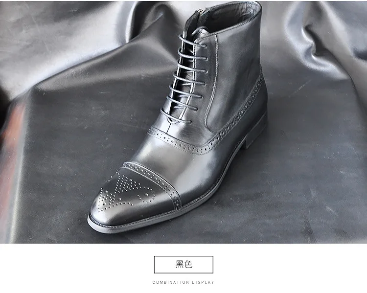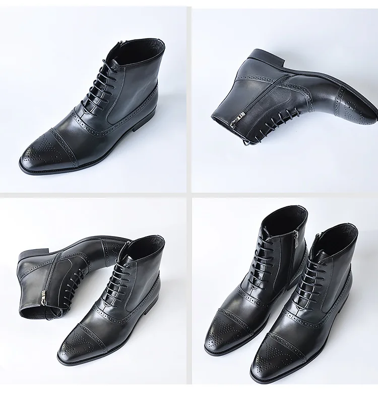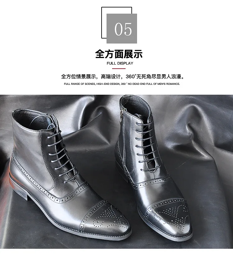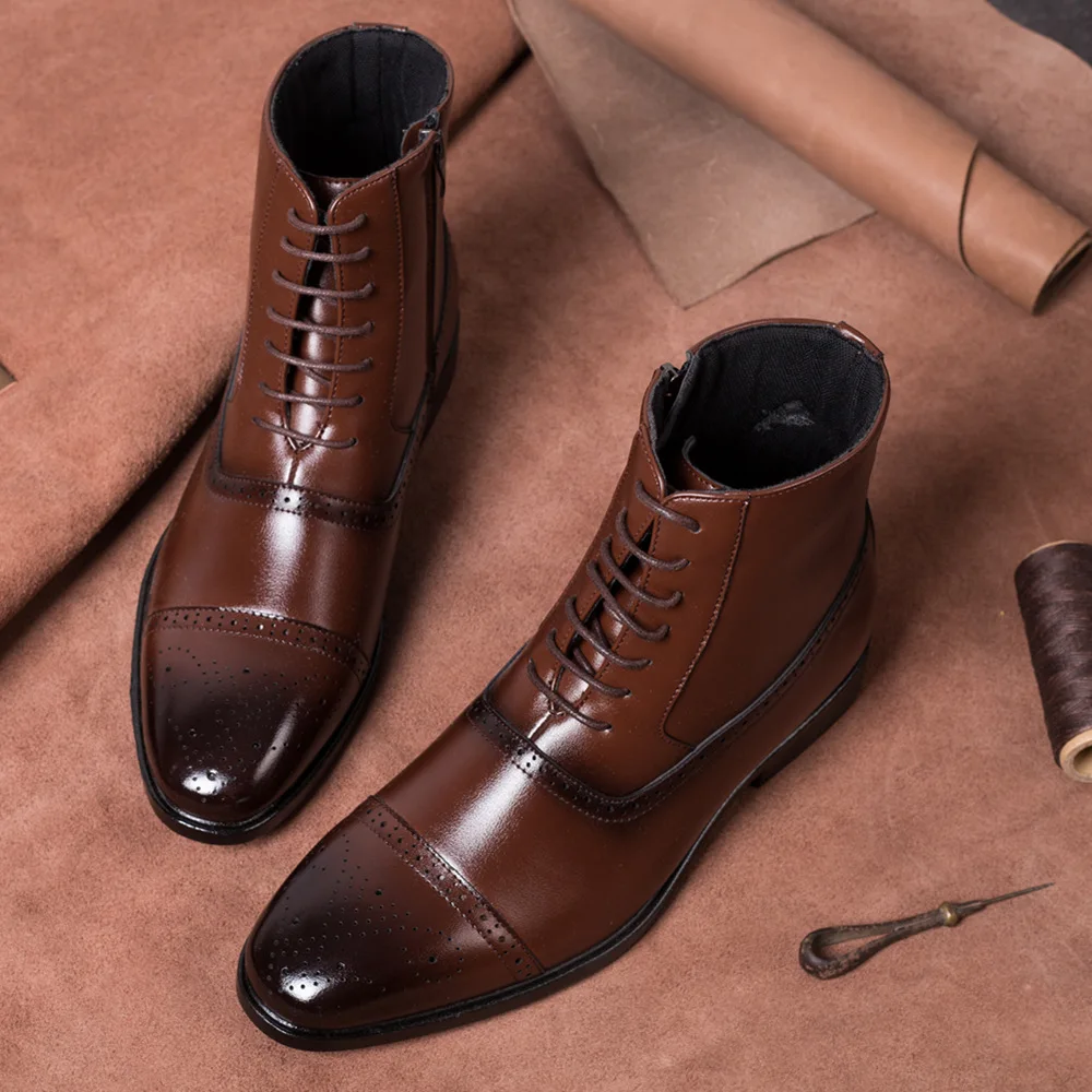 2024 British Style Fashion Footwear Men's PU Leather Brogue Boot Dress Shoes Men Ankle Boots