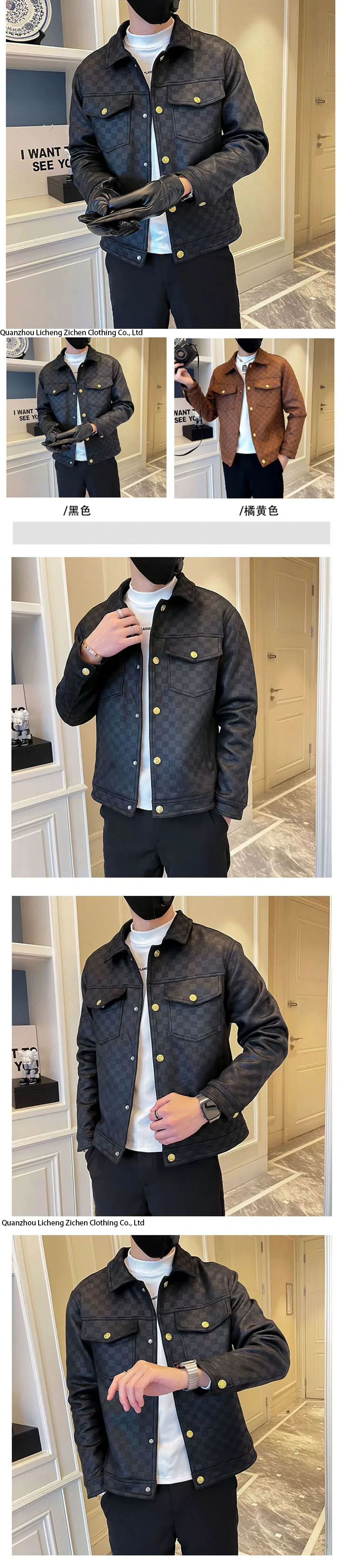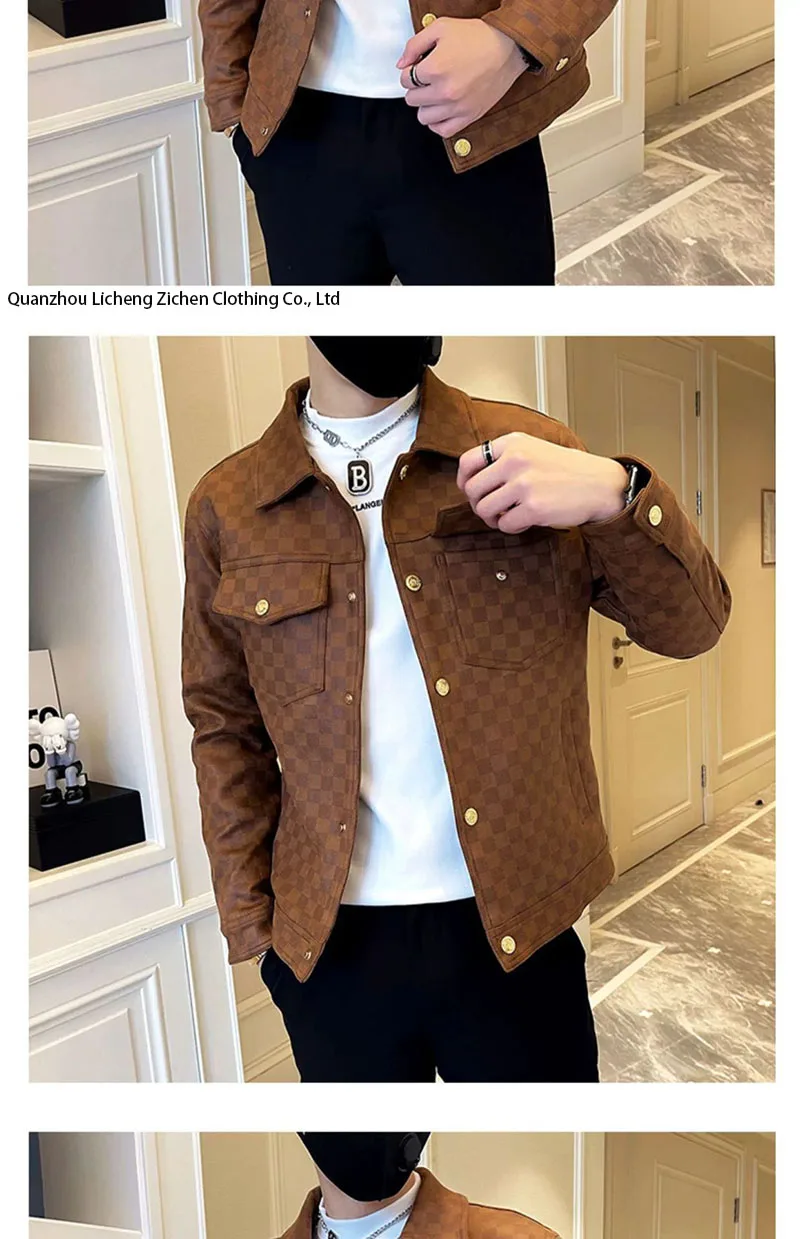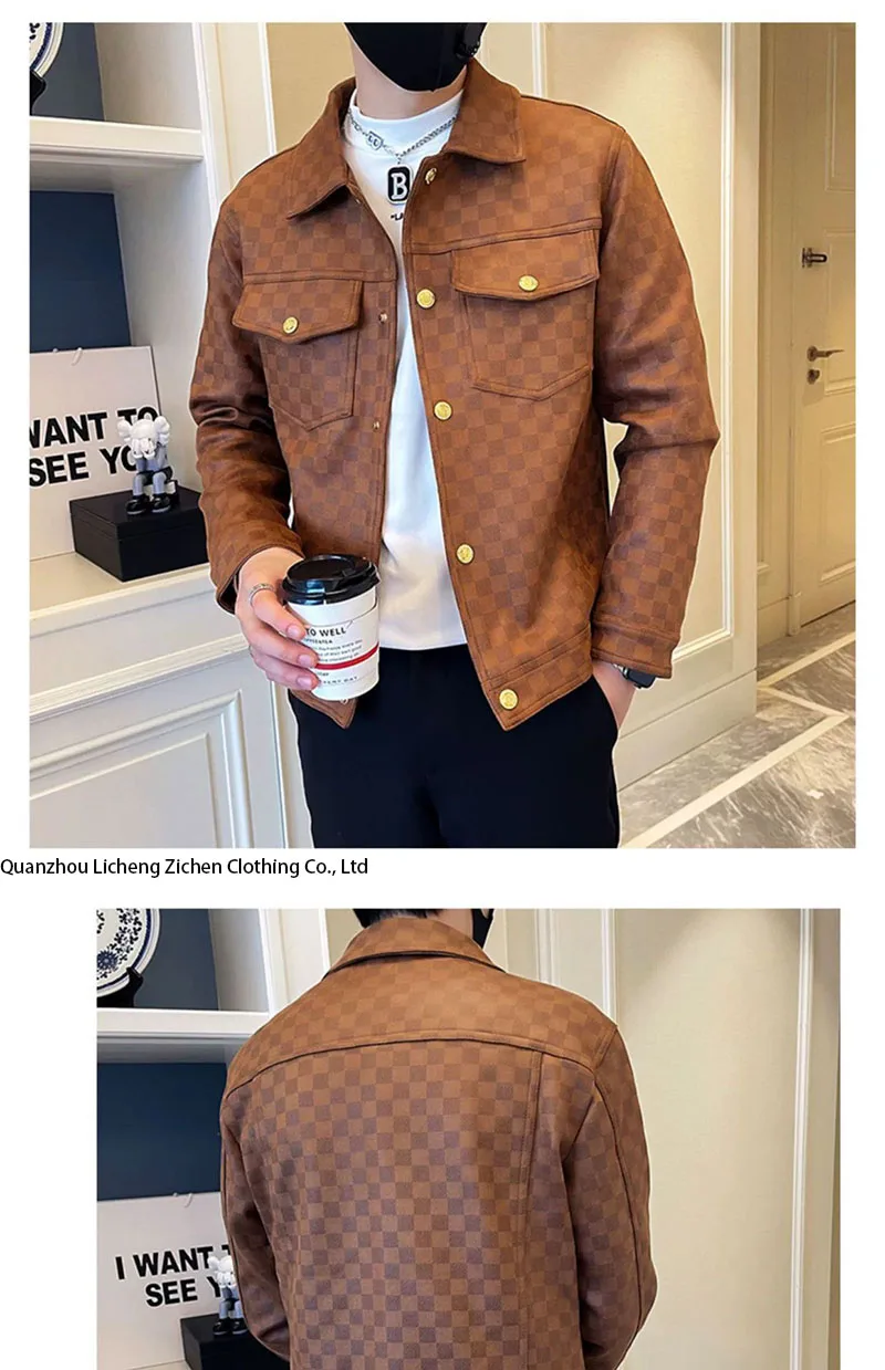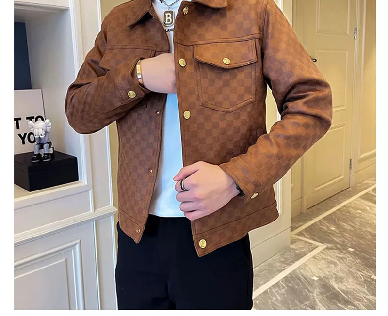 2025 Autumn Winter Suede Plaid Jacket for Men Lapel Slim Fit Casual Business Bomber Jacket Social Streetwear Windbreaker Coat