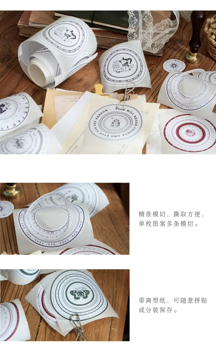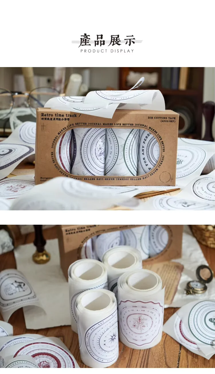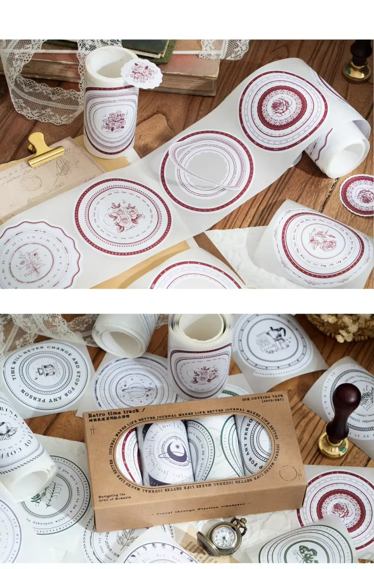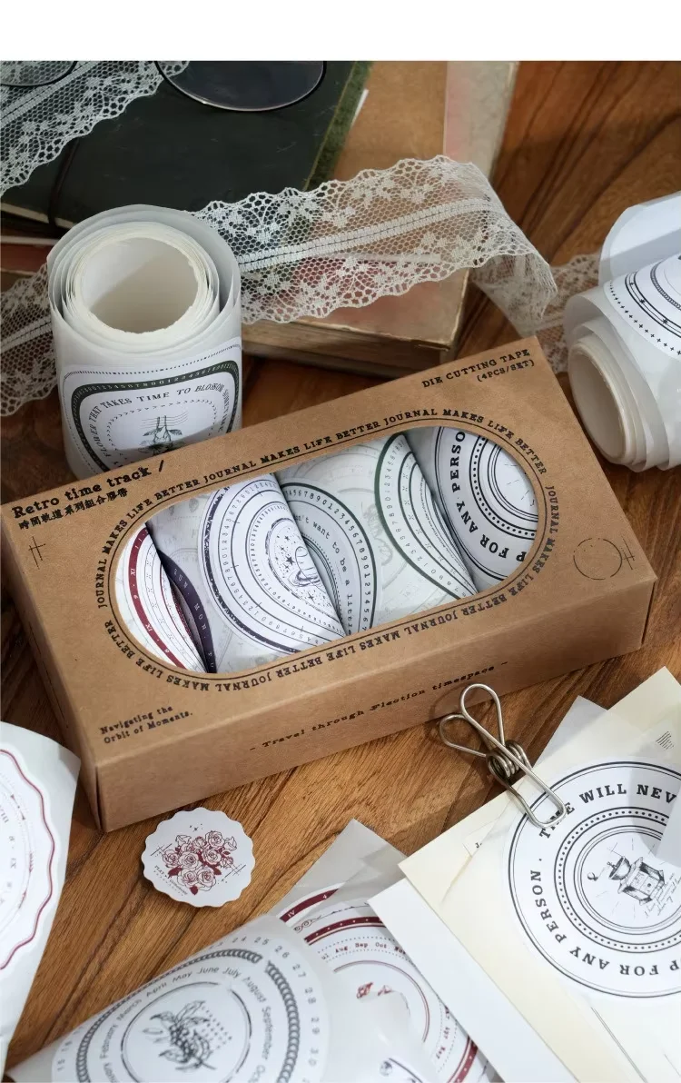 4 Rolls/box Combination Tape Time Track Series Retro Theme Handbook DIY Material Decorative Loop Stickers