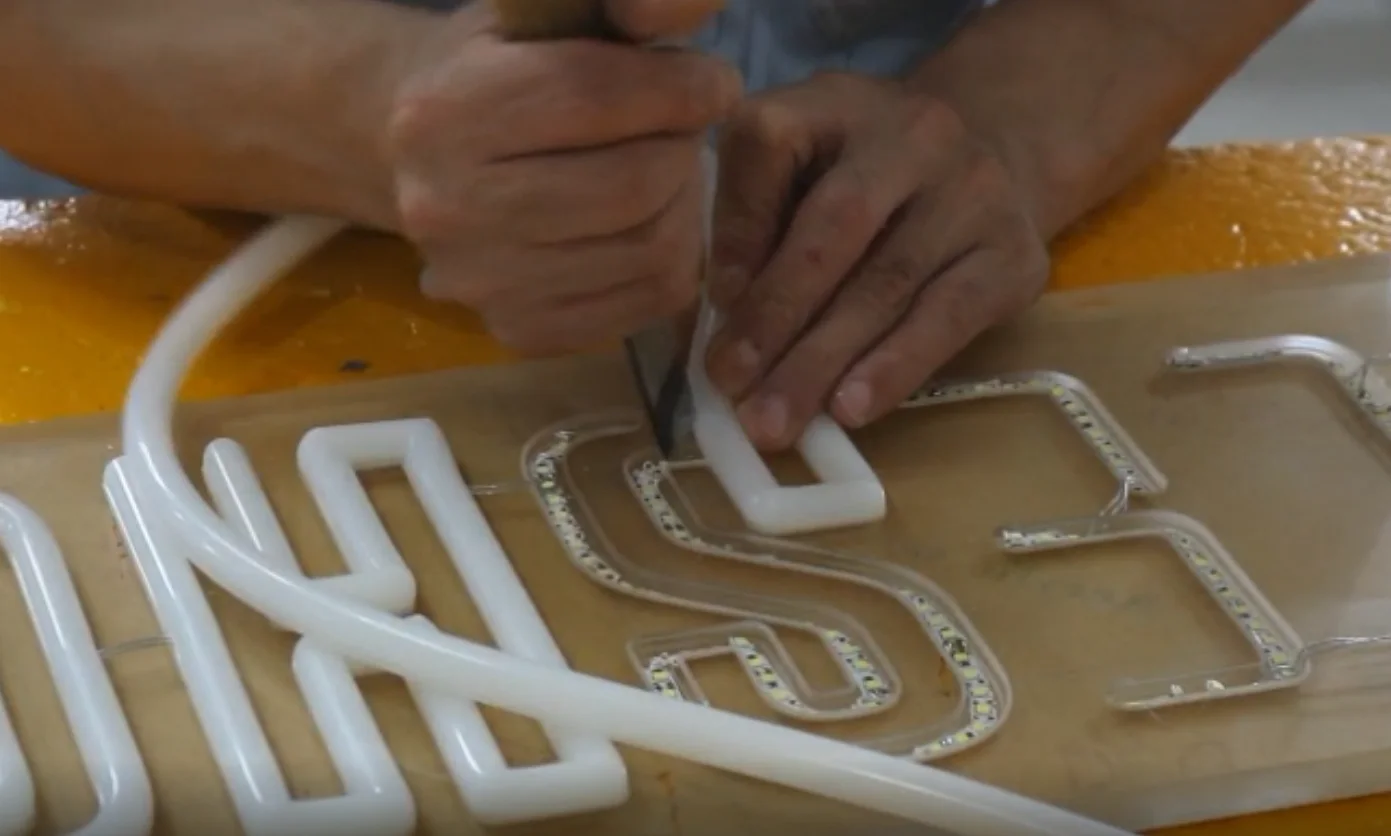 In addition to silicone tube extrusion and LED strip production lines, we also have a production department for finished neon lights. We are familiar with everything from the carving files, engraving, laying led strips, install silicone tube and final products.