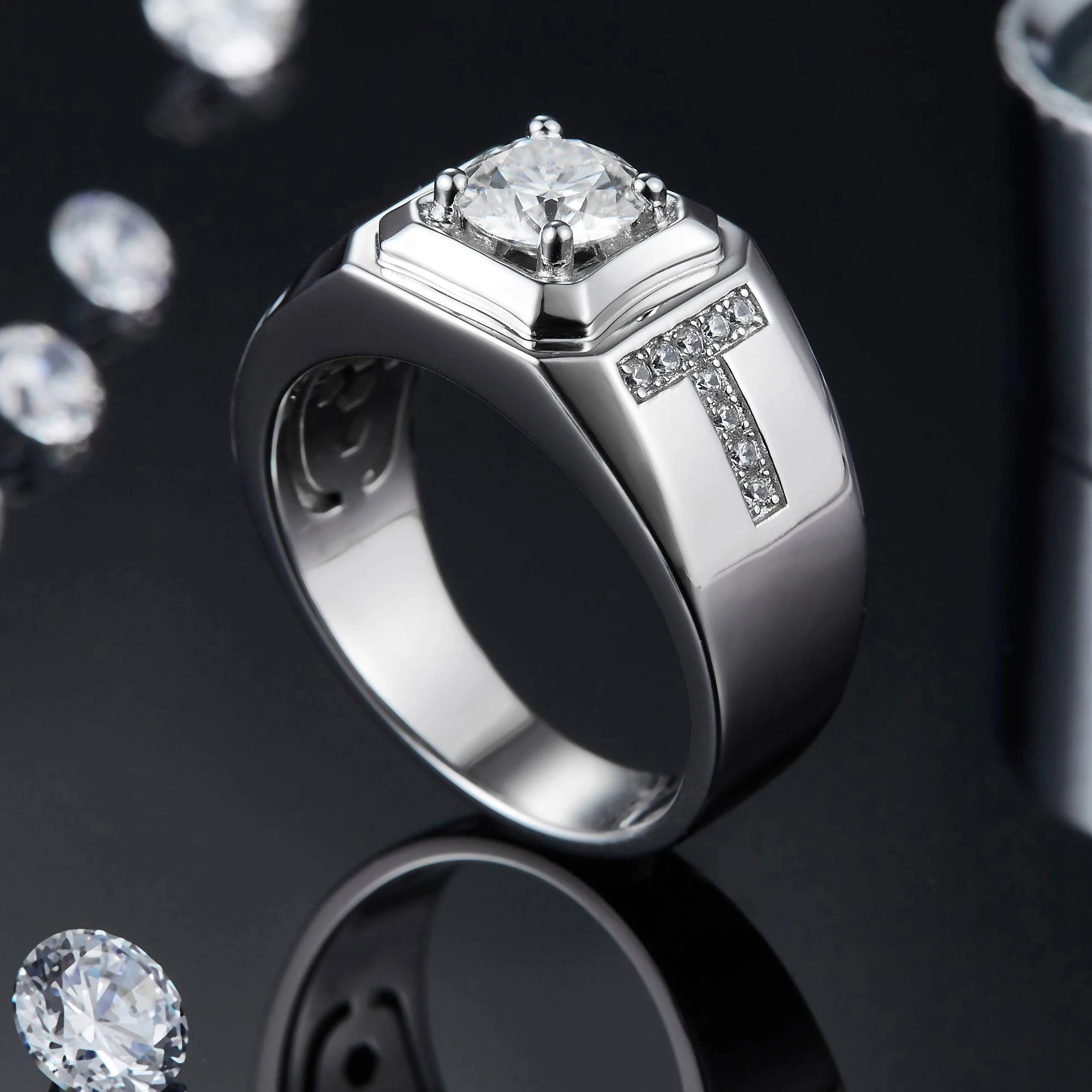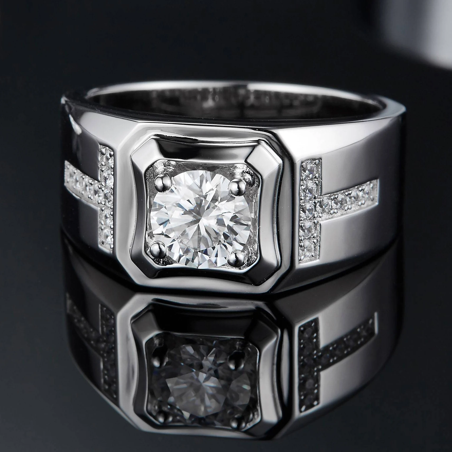 SGARIT Dropshipping 1ct Moissanite Diamond Ring Jewellery White Gold Plated 925 Sterling Silver Jewelry Finger Ring for Men