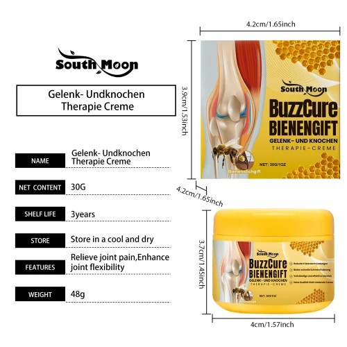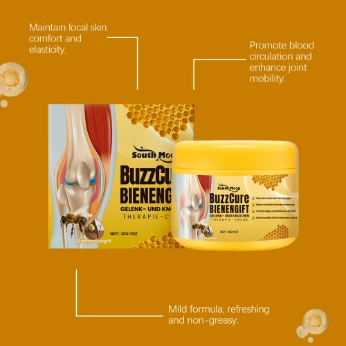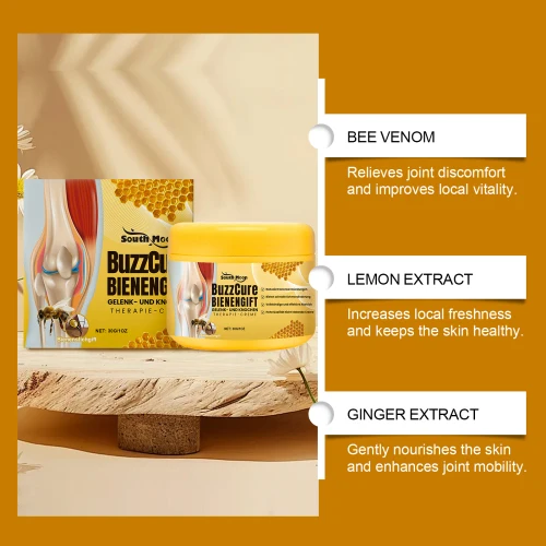 Our joint care cream contains bee venom, lemon extract and ginger extract. It can effectively reduce joint discomfort and bring more comfortable activity experience; Maintain joint flexibility and enhance the freedom of daily activities. Its use is very simple: Apply appropriate amount of this product to the elbows, thighs and other joints, massage until absorbed. Continuous release of soothing ingredients to reduce discomfort and enhance joint vitality.