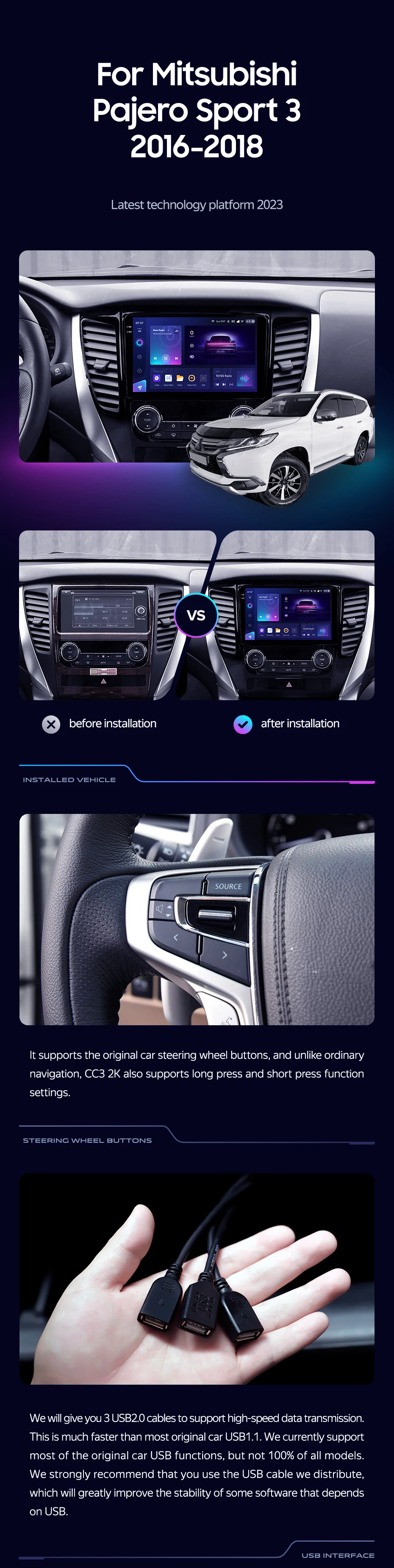 TEYES CC3 2K for Mitsubishi Pajero Sport 3 2016 - 2018 Car Radio Multimedia Video Player Navigation Stereo GPS Android 10