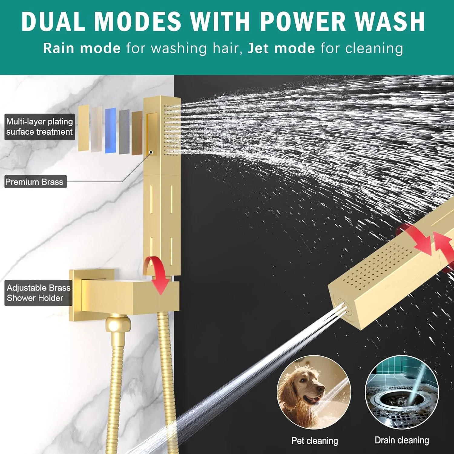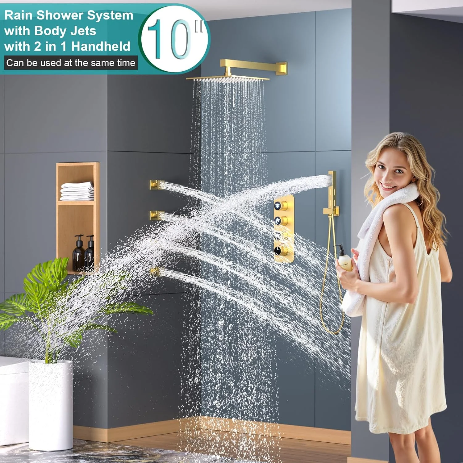 Upgrade 10 Rainfall Head 4PC On-Off Switch Body Glowing Icon Diverter Valve All-Jets Shower System One Handheld Brushed Faucet