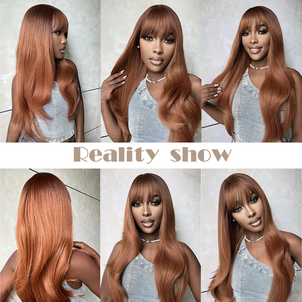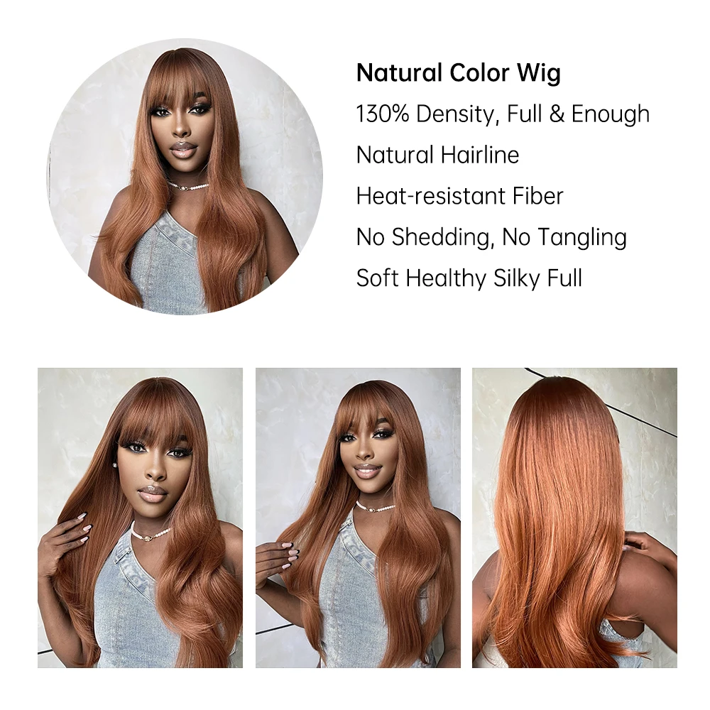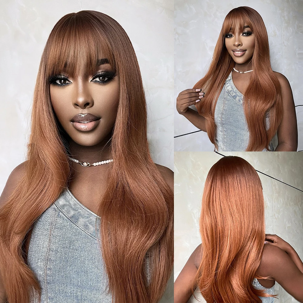 Wholesale Price Future Fiber Orange Long Straight Hair Synthetic Wig Wavy Hair Matte High Density African Girl