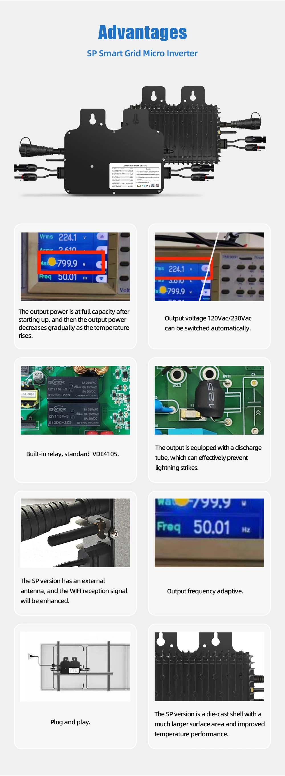 Solar Smart Grid Tie Micro Inverter SP800